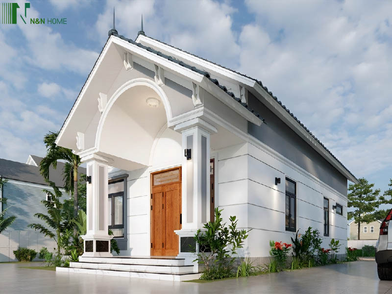 Nhà cấp 4 mái Thái truyền thống tinh tế là sự kết hợp hoàn hảo giữa vẻ đẹp cổ điển và tính tiện dụng hiện đại. Mái nhà có dạng vòm cong mềm mại, không chỉ tạo nên hình ảnh thanh thoát mà còn giúp tôn lên vẻ đẹp thiên nhiên xung quanh. Không gian bên trong được thiết kế mở, thoáng đãng với cửa sổ lớn, đón ánh sáng tự nhiên, mang lại cảm giác ấm cúng nhưng không kém phần rộng rãi.
