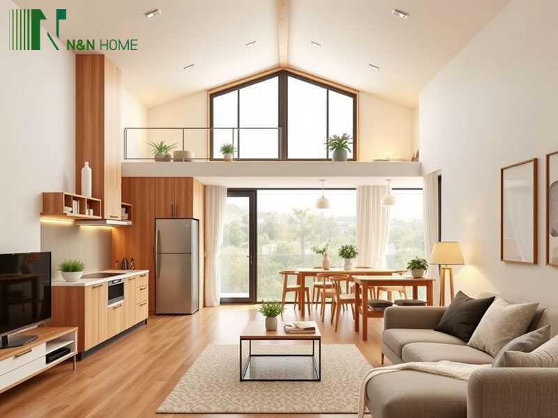 Để tiết kiệm diện tích, nên chọn nội thất đa năng như giường gấp, tủ âm tường, bàn ăn gập. Những món đồ này giúp giữ không gian luôn gọn gàng mà vẫn đảm bảo đầy đủ tiện nghi.