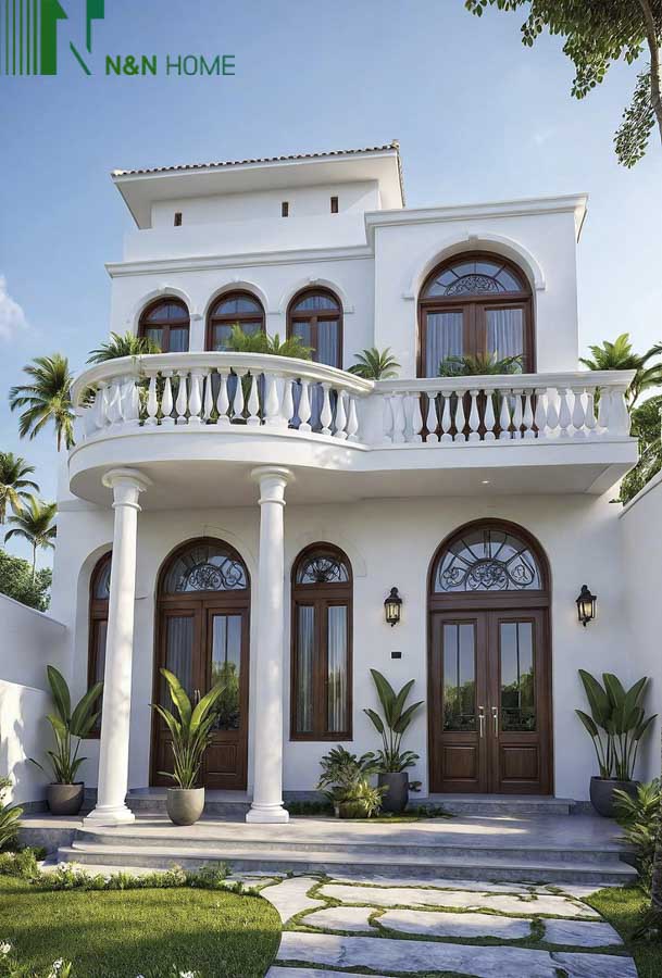 Phong cách tân cổ điển mang đến vẻ đẹp sang trọng và tinh tế. Kiểu thiết kế này tập trung vào sự kết hợp cân đối, hài hòa giữa các chi tiết trang trí cổ điển và hiện đại. Các đường nét phào chỉ tinh xảo trên tường, cột nhà kết hợp cùng với những gam màu sáng như trắng, kem, hoặc vàng nhạt giúp tạo nên không gian sống thanh lịch.
