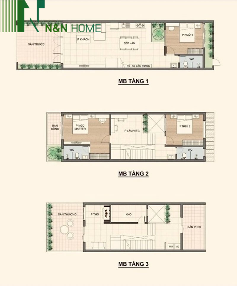Mặt bằng công năng mẫu nhà phố mặt tiền 5m