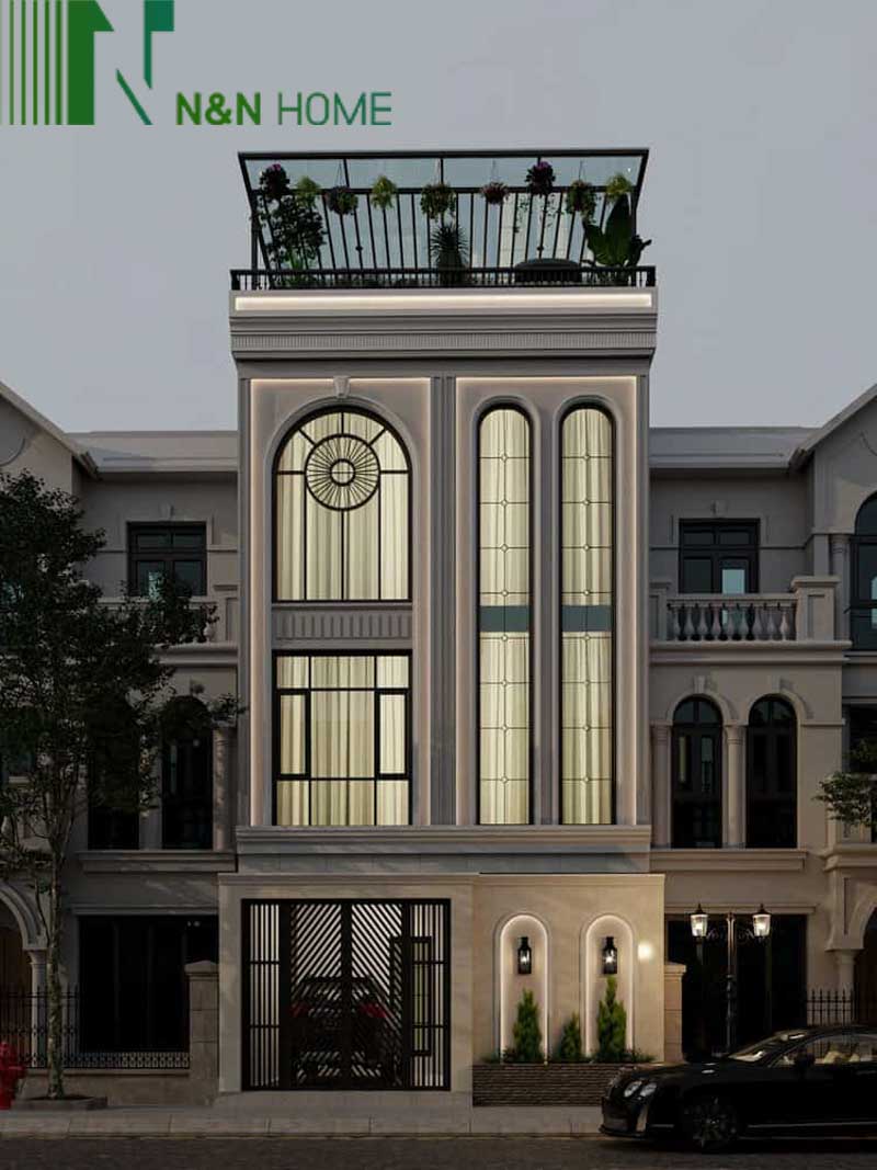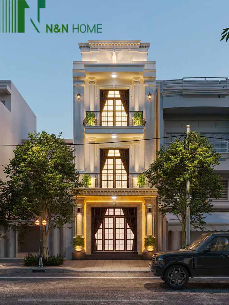 Thiết kế nhà mặt tiền 5m phong cách tân cổ điển
