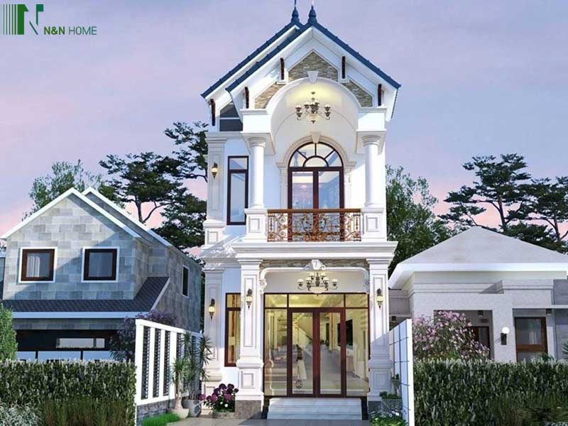 Mẫu nhà màu trắng chủ đạo kết hợp họa tiết cầu kỳ sang trọng