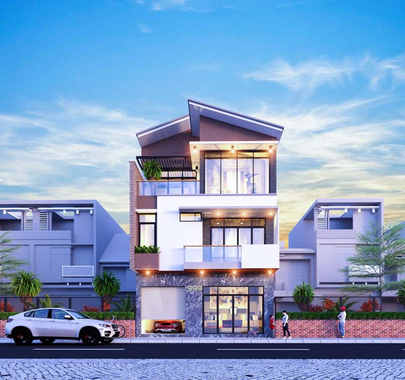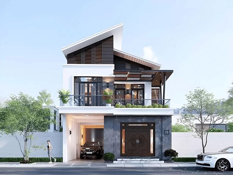 Mẫu thiết kế nhà mặt tiền mái lệch