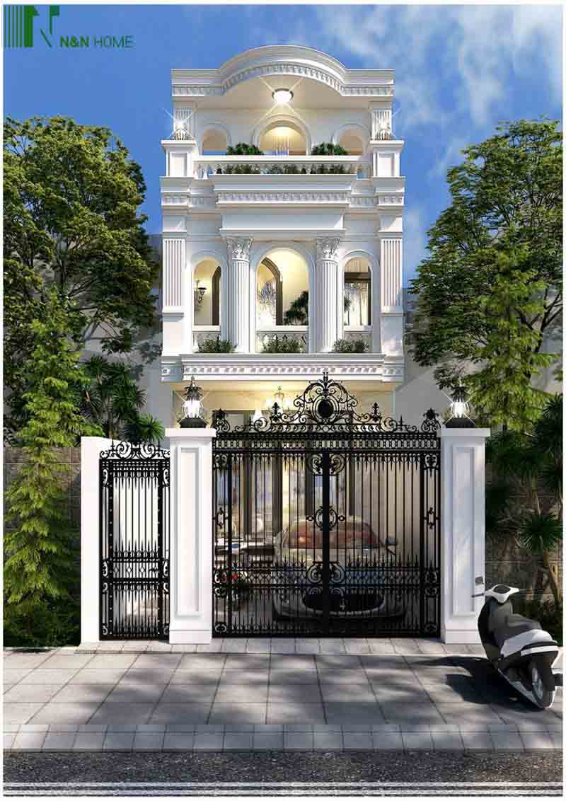 Mẫu nhà mặt tiền 8m sâu 10m theo phong cách tân cổ điển