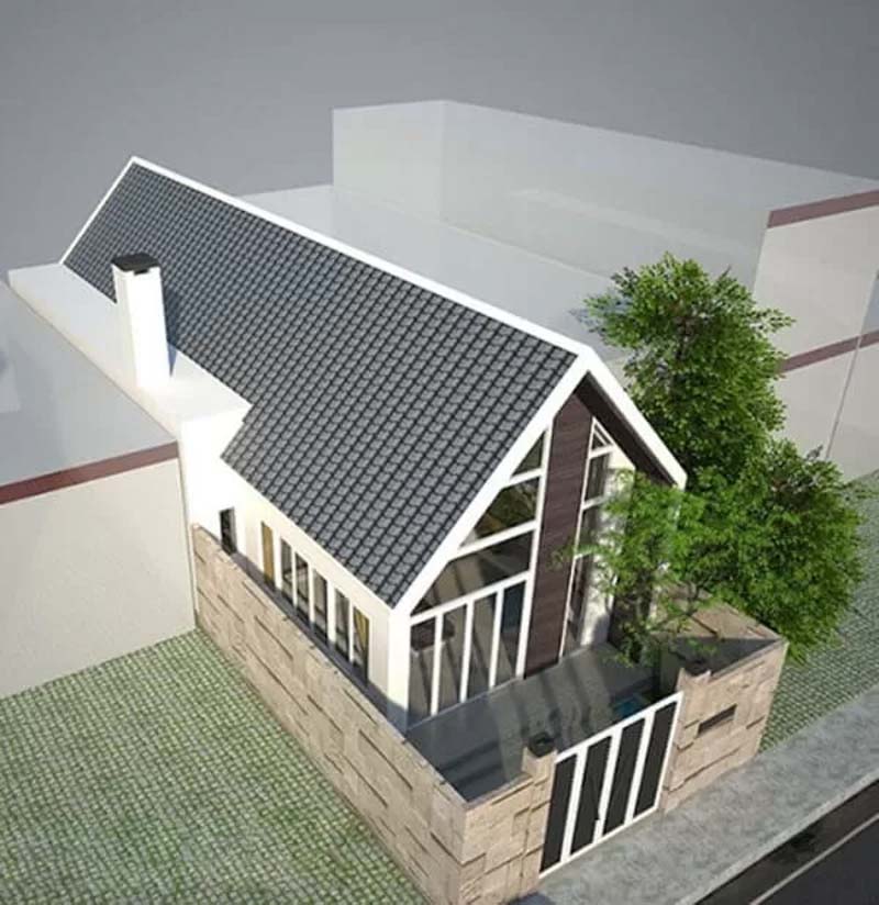 Mẫu nhà ngang 5m dài 20m 2 tầng mái thái