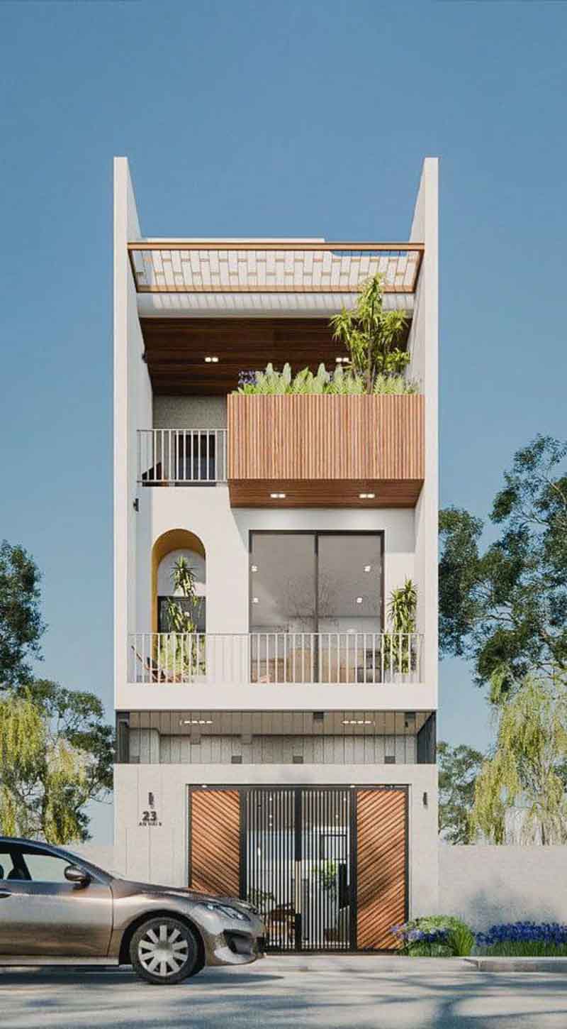 Mặt tiền ngôi nhà là điểm nhấn quan trọng tạo ấn tượng ban đầu. Gia chủ có thể lựa chọn các phong cách mặt tiền như hiện đại, cổ điển hoặc kết hợp, tùy theo sở thích cá nhân. Ý tưởng cảnh quan như trồng cây xanh, tạo khu vườn nhỏ cũng góp phần tăng thêm vẻ đẹp cho ngôi nhà.