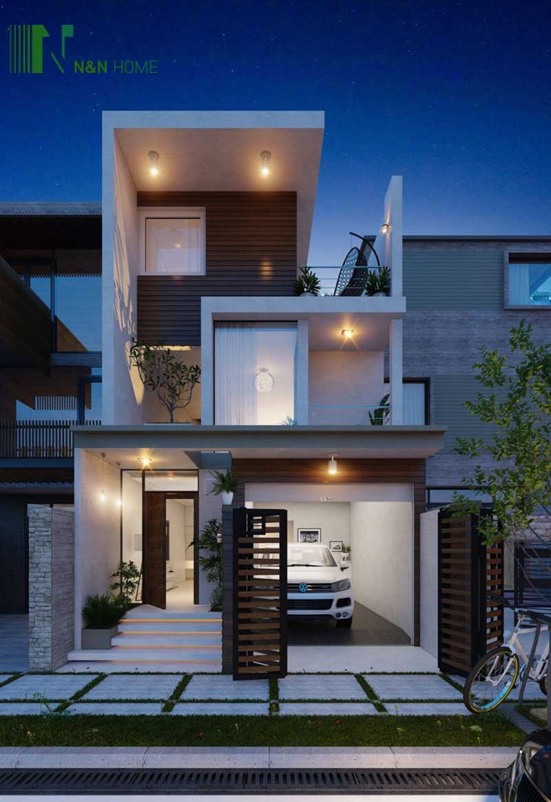 Những mẫu nhà 2 tầng rộng 4m dài 20m có sân trước và gara ô tô
