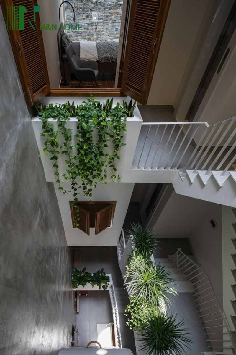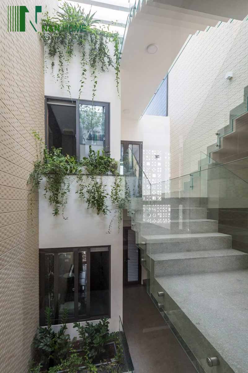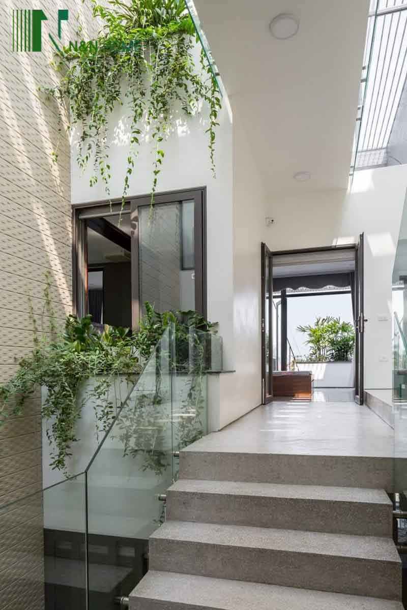 Kết hợp nhiều mảng xanh từ mặt tiền đến sân vườn và ban công, mẫu nhà lệch tầng này tạo nên không gian sống mát mẻ, thư giãn và tràn đầy sức sống cho mọi thành viên trong gia đình.